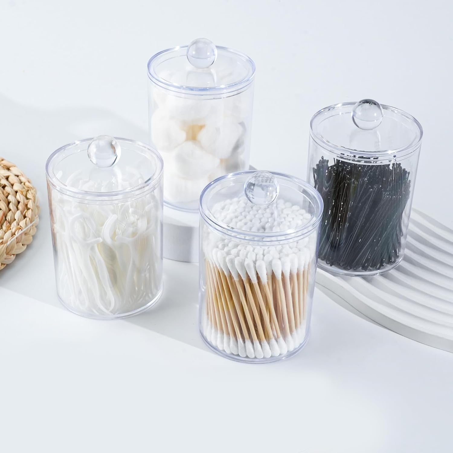 - PRODUCT INCLUDES:Product includes 1 x 10 oz,1 x 12 oz cotton swab jars with lids, smooth edges, safe and unbreakable