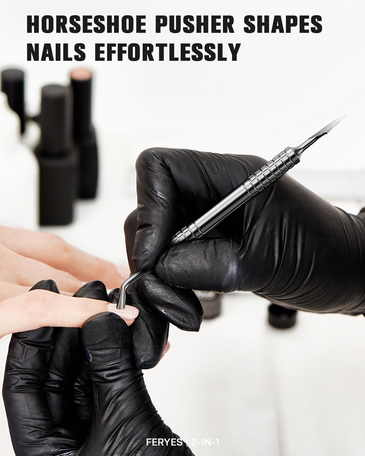 - 【Dual Heads for Surgical-Grade Precision】Engineered with a innovative Horseshoe Edge pusher and chisel edge – Achieve salon-level results by gently pushing cuticles without tearing, while the 1.5mm Chisel Edge effortlessly scrapes off gel polish, calluses, and dead skin. No more switching between 2 tools!